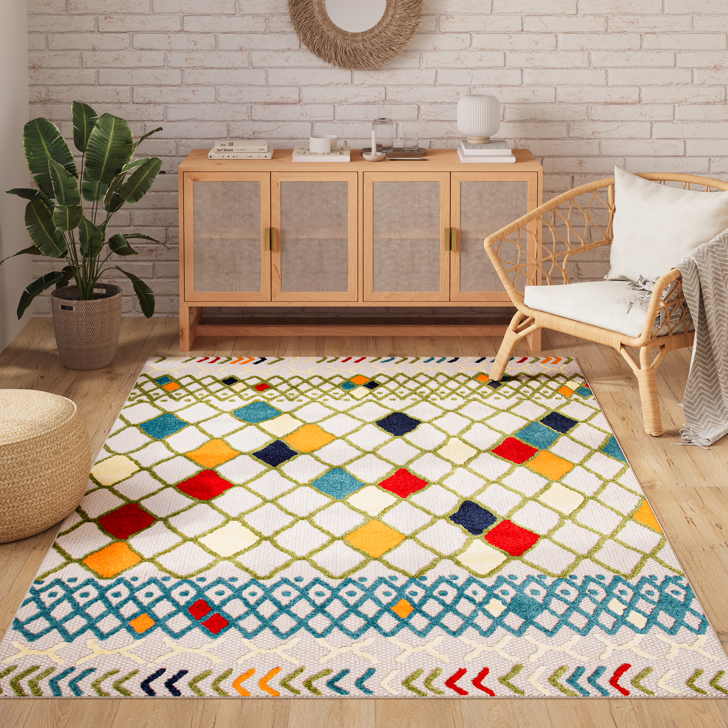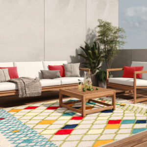 ¿Qué hace que las alfombras Patio destaquen? En primer lugar, están diseñadas para su uso tanto en interiores como en terrazas o balcones. Su pelo corto de dos niveles hace que no sólo sean estéticamente agradables, sino también fáciles de limpiar, algo que apreciarán los dueños de mascotas. Independientemente de las condiciones climáticas, las alfombras Patio conservan sus cualidades, por lo que pueden disfrutarse en cualquier estación. Además, gracias a su resistencia a las manchas, ni siquiera éstas consiguen perder el encanto de estas alfombras únicas. Basta con un momento para devolver a la alfombra Patio su estado fresco y brillante.