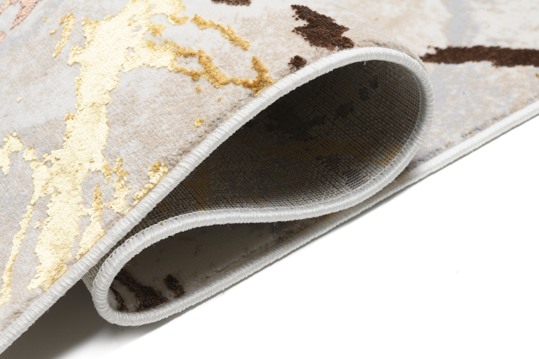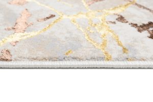 Las alfombras Golden son una línea de alfombras de alta calidad con diseños abstractos y vintage en una cautivadora paleta de colores crema y oro.